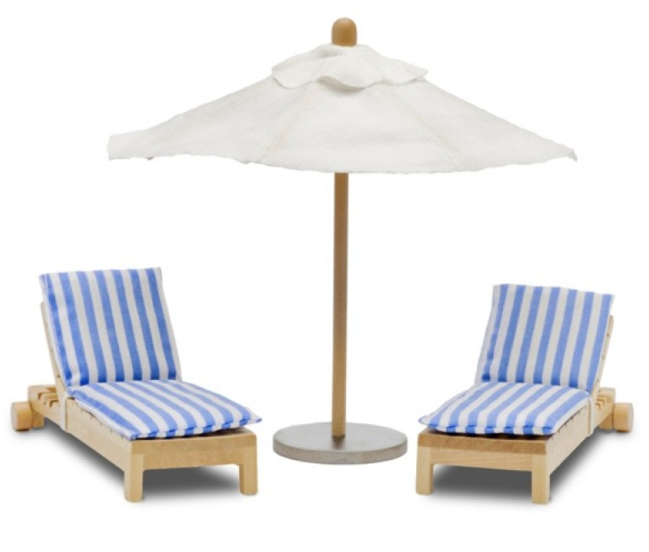 Два сине-белых шезлонга в полосочку,