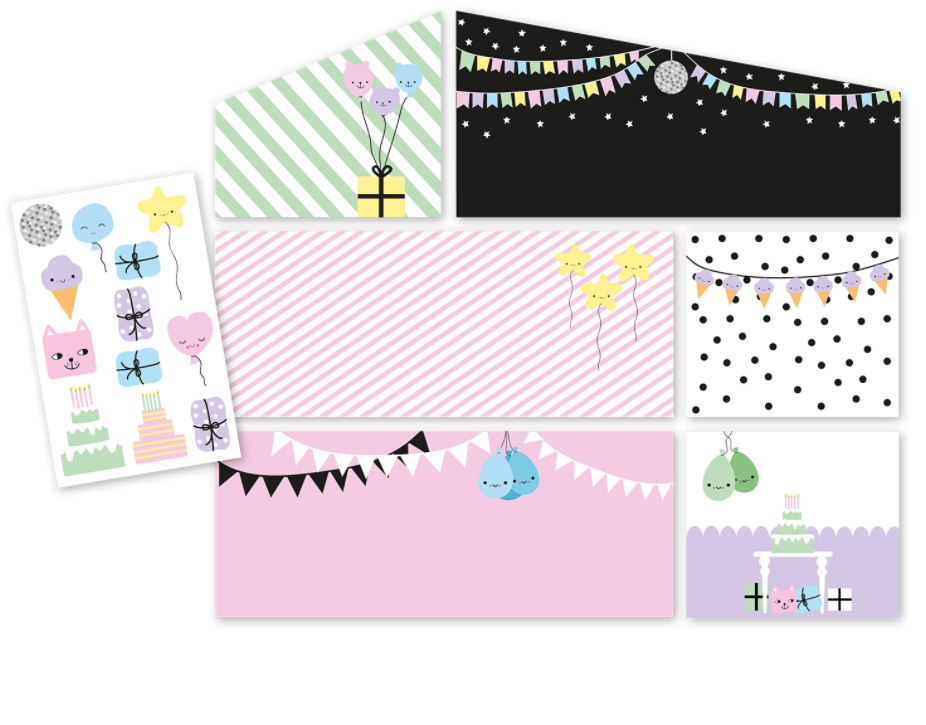 Заготовки представляют собой обои с дизайном, который наполнить кукольный домик атмосферой праздника и веселья.
